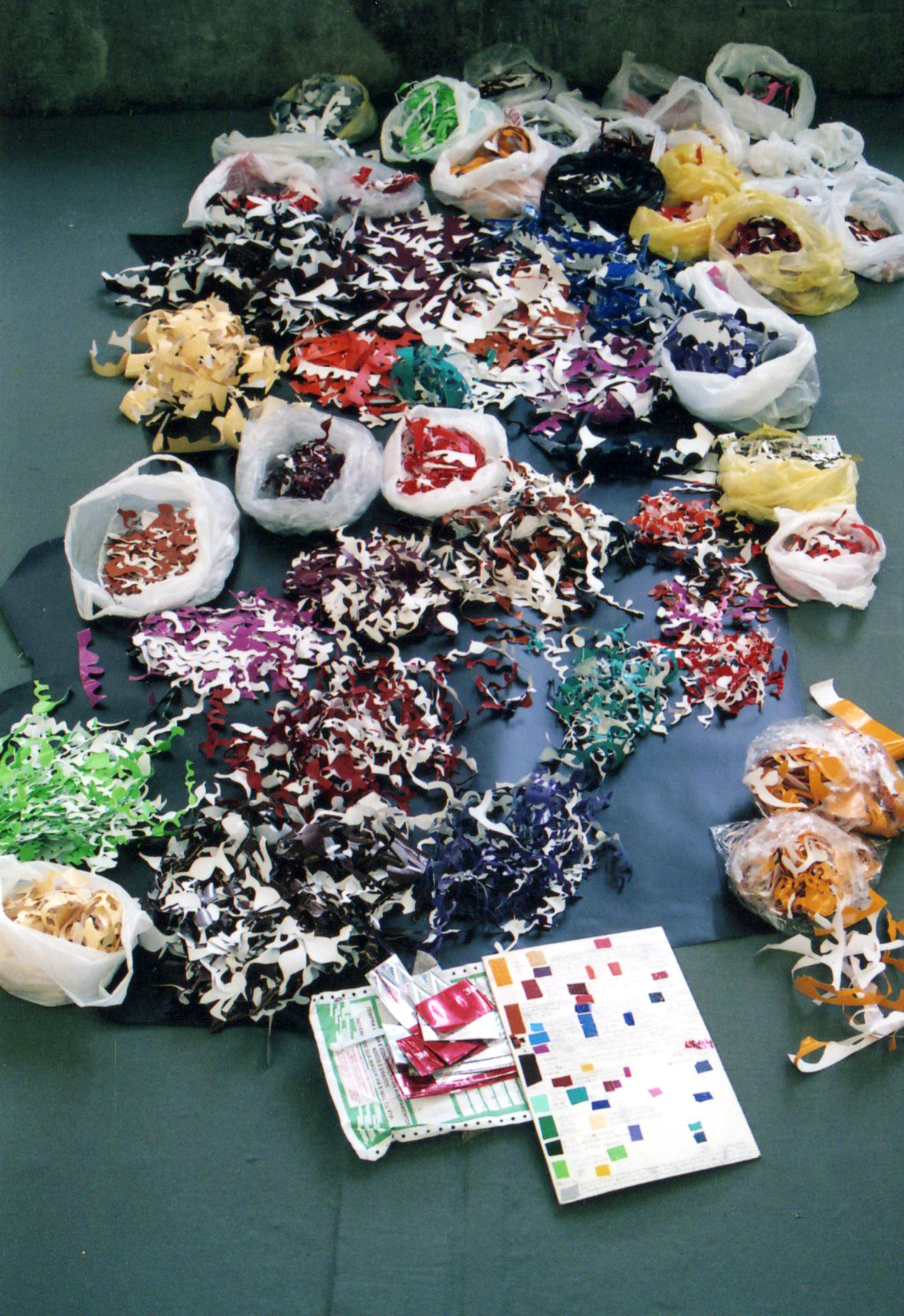 Installation made with word’s forms and counter forms sliced from a vinyl surface