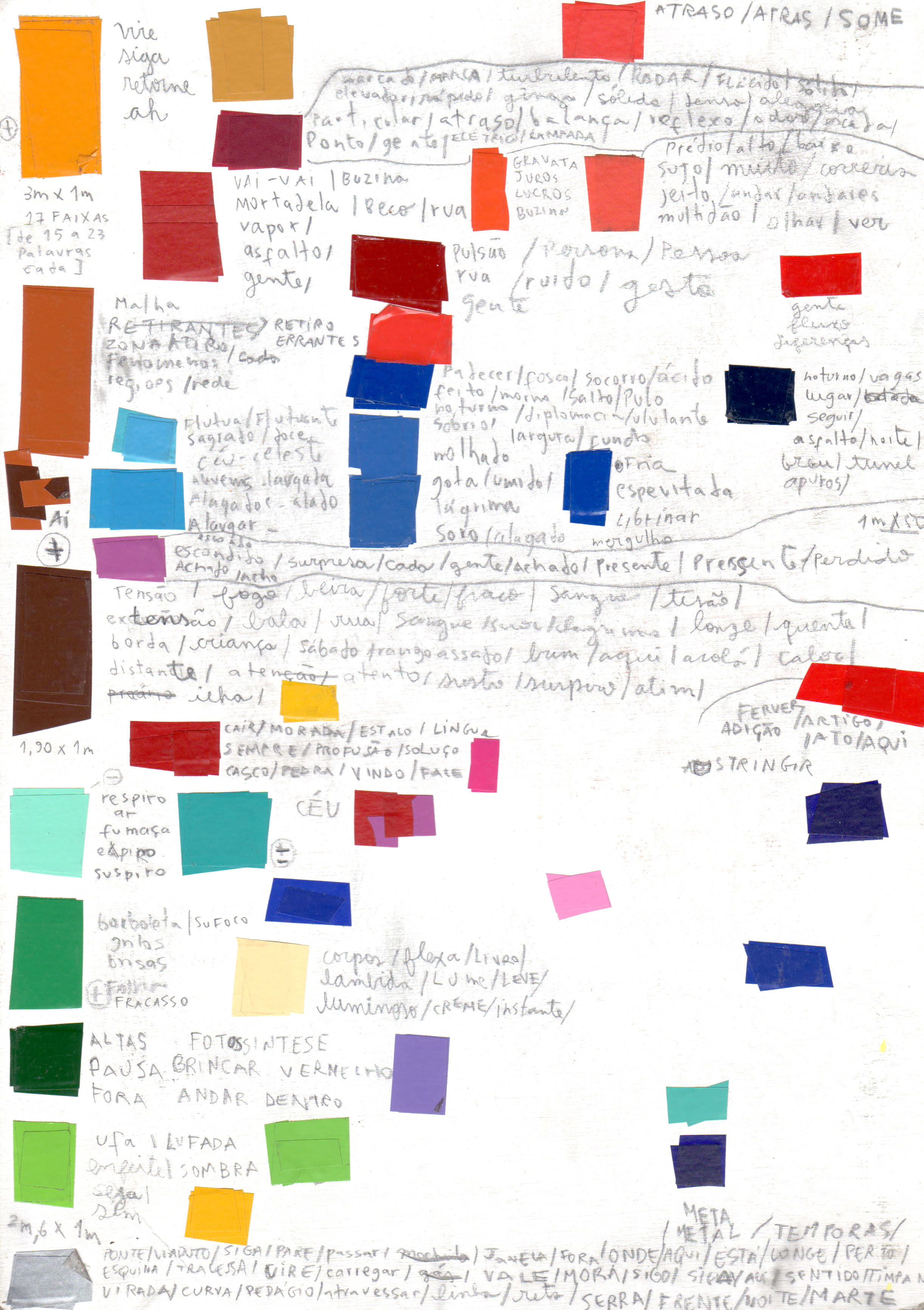 Um grande mapa de São Paulo é construído com palavras recolhidas em diálogos com moradores da cidade sobre a cidade.