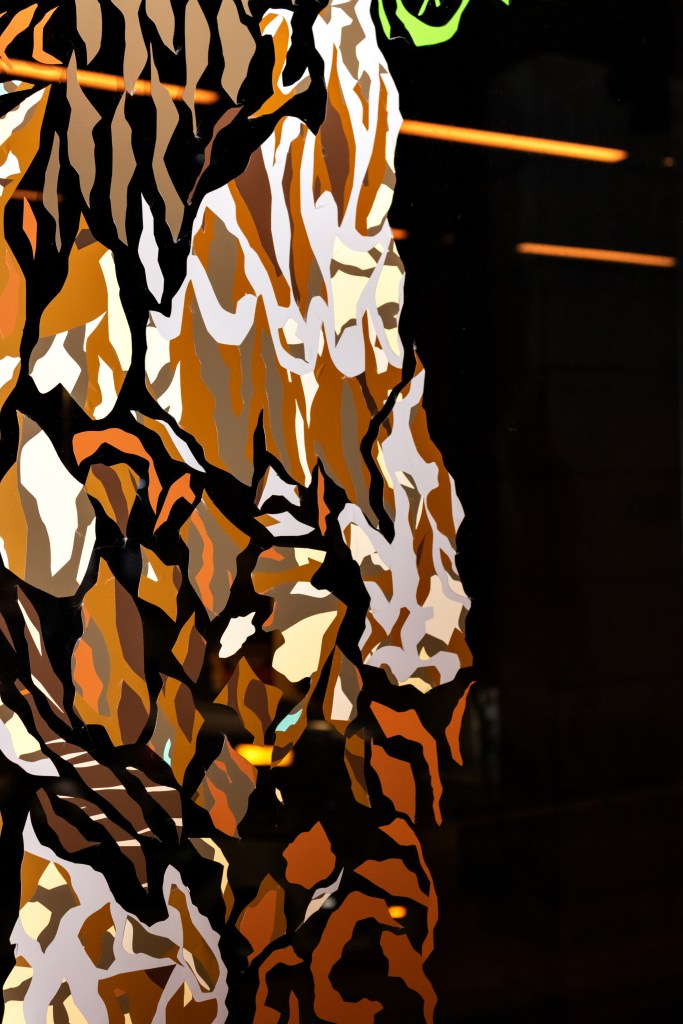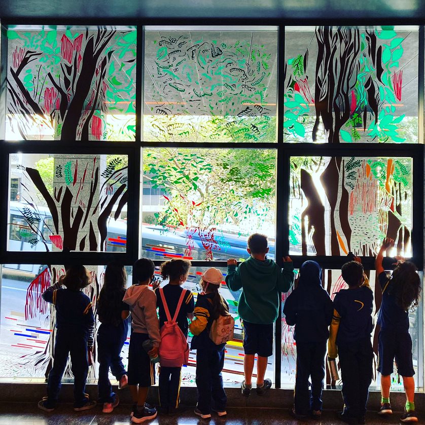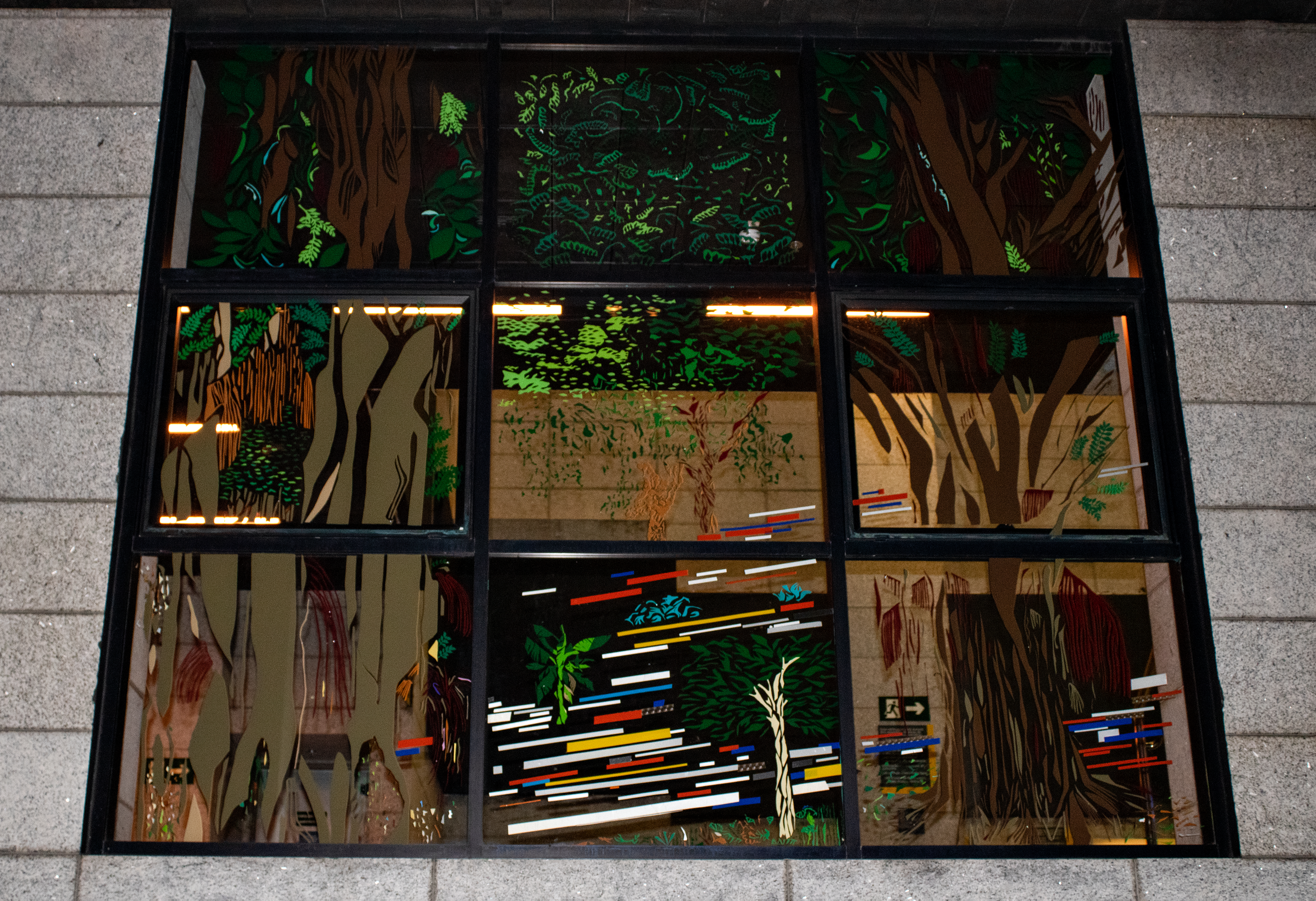 Recorte manual de vinil adesivo sobre vidraças