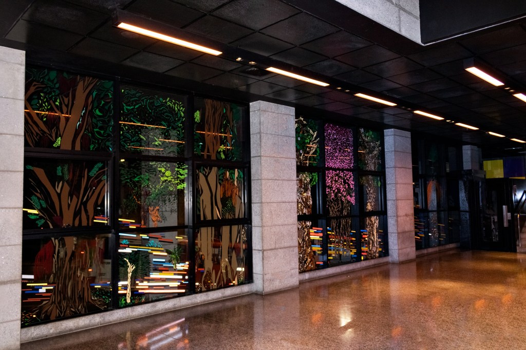 Movente é uma obra de recorte instalada sobre as vidraças do Sesc Palladium, voltadas para a avenida Augusto de Lima, no centro de Belo Horizonte. Os recortes se baseiam em árvores do bioma do cerrado e estão compostas em jogo com o grande fluxo do trânsito que atravessa a paisagem, vista de dentro para fora. Além da passagem do tempo sobre o que se move e o que permanece parado, o trabalho faz alusão às árvores que existiam no canteiro central e foram cortadas em 1968, a mando do então prefeito Luís de Souza Lima, sob a justificativa de que elas ofereciam um perigo para a visibilidade da rua, e infringiam a ordem e os bons costumes da capital mineira.
