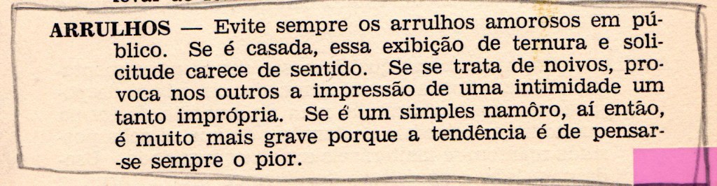 Nas orientações e instruções sobre como andar, como sentar, como falar, como cuidar, como se manter bela, como cumprimentar, como existir, estavam embutidas o jogo da conquista discreta, com o objetivo de conseguir um bom casamento.